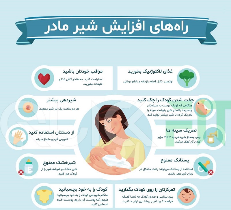 در صورت عدم افزایش شیر مادر علی رغم اقدامات فوق جهت تجویز مکمل های شیر افزا یا قطره یا قرص شیر افزا به پزشک مراجعه کنید.