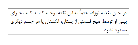 - نوک سینه و هاله ی آن را به صورتی قرار دهید که کاملا در دهان نوزاد قرار بگیرد.