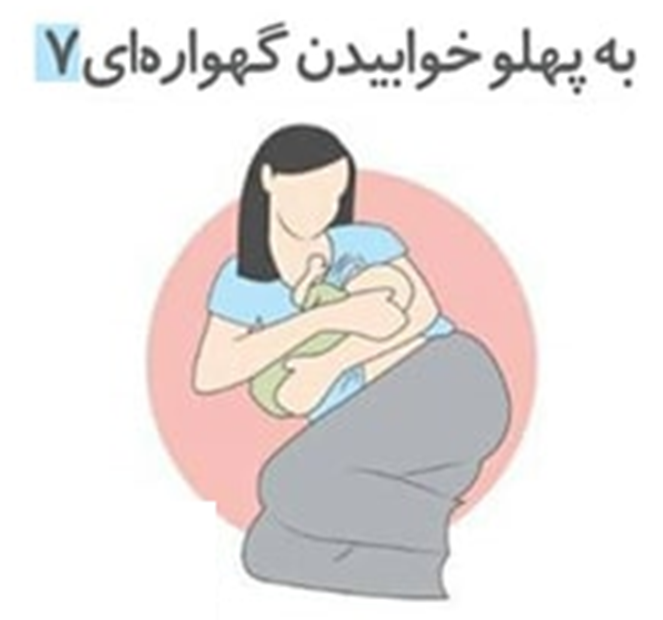 ۷- شیردهی به روش به پهلو خوابیدن گهواره ای