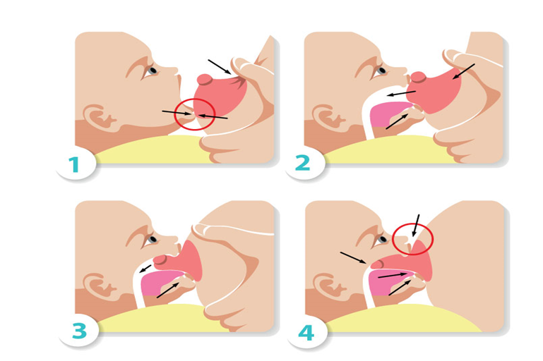 نحوه ی صحیح قرار دادن نوک سینه در دهان نوزاد