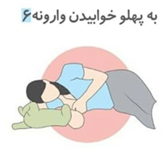 ۶- شیردهی به روش به پهلو خوابیدن وارونه